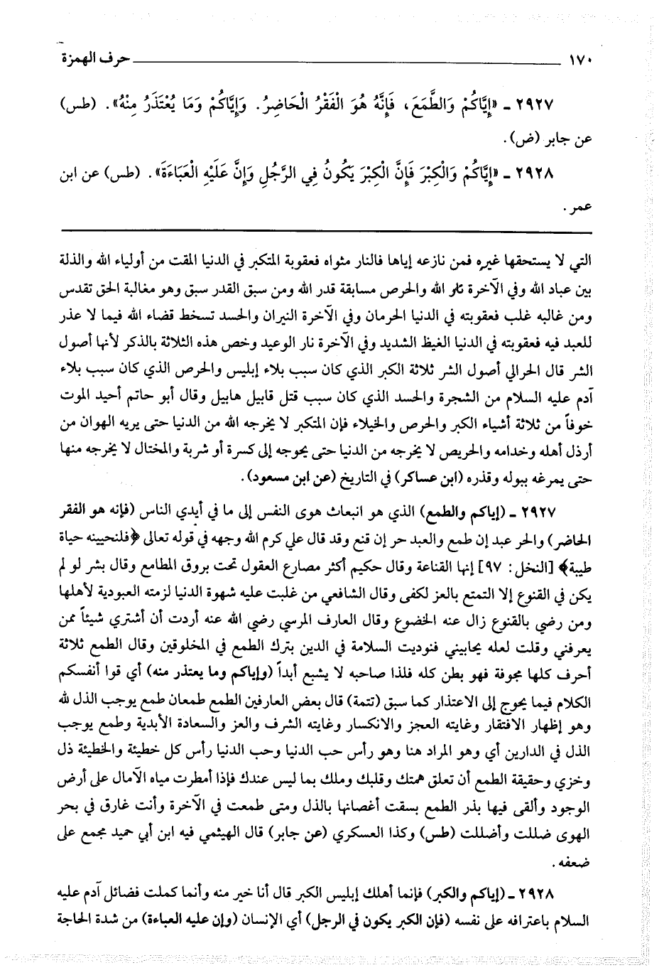 2928 (إياكم والكبر) فإنما أهلك إبليس الكبر قال : أنا خير منه وإنما كملت فضائل آدم عليه السلام