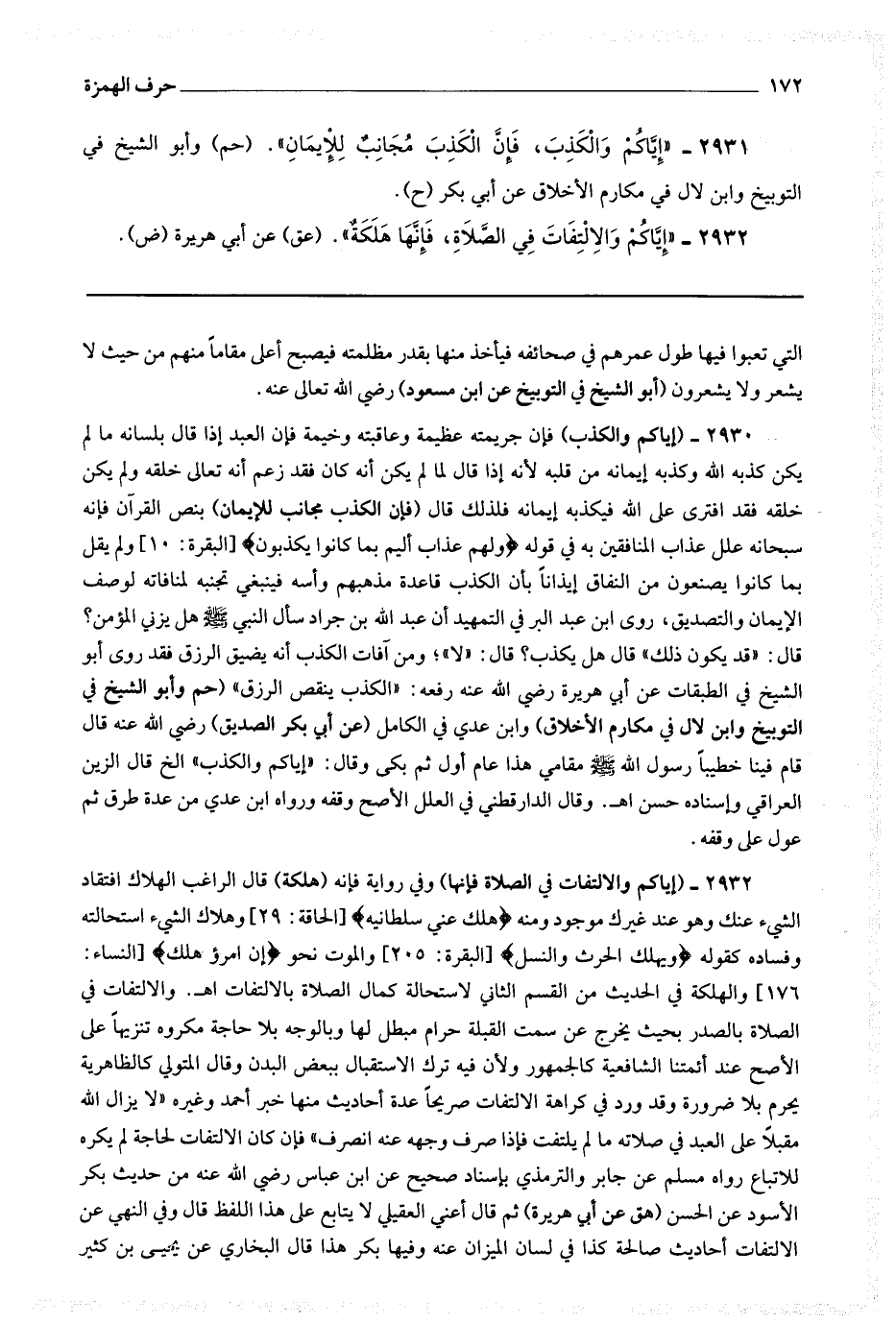 2932 (إياكم والالتفات في الصلاة فإنها) وفي رواية فإنه (هلكة) قال الراغب : الهلاك افتقاد الشئ عنك وهو عند غيرك موجود ومنه * (هلك عني سلطانيه) * وهلاك الشئ استحالته