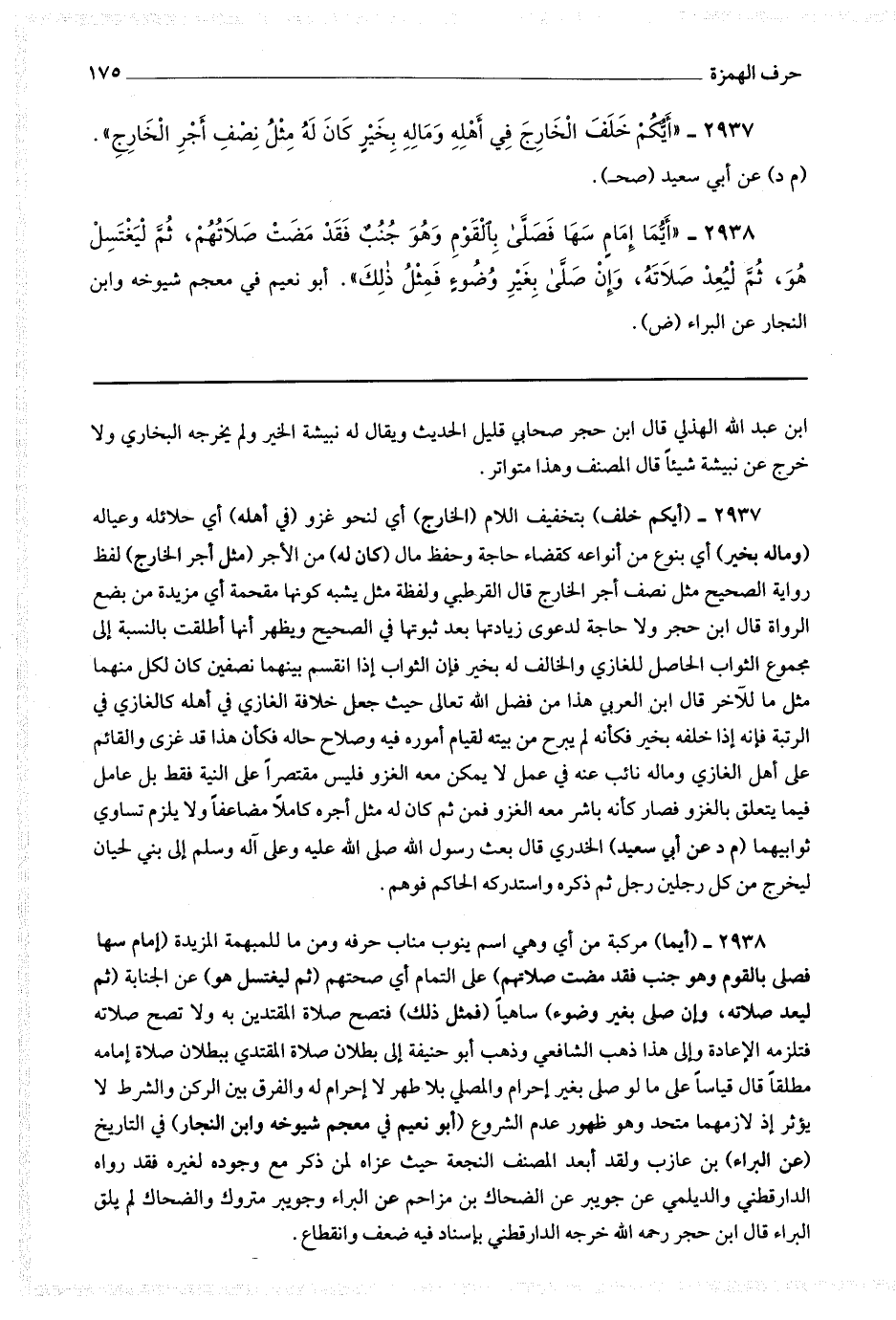 2938 (أيما) مركبة من أي وهي اسم ينوب مناب حرفه ومن ما المبهمة المزيدة (إمام سها فصلى بالقوم وهو جنب فقد مضت صلاتهم) على التمام أي صحتهم (ثم ليغتسل هو) عن الجنابة (ثم ليعد صلاته وإن صلى بغير وضوء) ساهيا (فمثل ذلك) فتصح صلاة المقتدين به ولا تصح صلاته فيلزمه الإعادة إلى هذا ذهب الشافعي وذهب أبو حنيفة إلى بطلان صلاة المقتدي ببطلان صلاة إمامه مطلقا قال قياسا على ما لو صلى بغير إحرام والمصلي بلا طهر لا إحرام له والفرق بين الركن والشرط لا يؤثر إذ لازمهما متحد وهو ظهور عدم الشروع (أبو نعيم في معجم شيوخه وابن النجار) في التاريخ (عن البراء) بن عازب ولقد أبعد المصنف النجعة حيث عزاه لمن ذكر مع وجوده لغيره فقد رواه الدارقطني والديلمي عن جويبر عن الضحاك بن مزاحم عن البراء وجويبر متروك والضحاك لم يلق البراء قال ابن حجر رحمه الله : خرجه الدارقطني بإسناد فيه ضعف وانقطاع