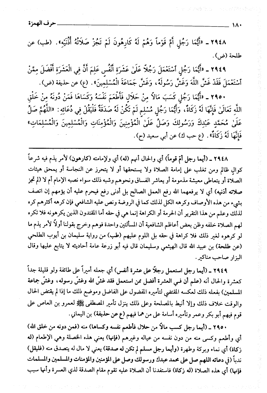 2948 (أيما رجل أم قوما) أي والحال أنهم (له) أي ولإمامته (كارهون) لأمر يذم فيه شرعا كوال ظالم ومن تغلب على إمامة الصلاة ولا يستحقها أو لا يتحرز عن النجاسة أو يمحق هيئات الصلاة أو يتعاطى معيشة مذمومة أو يعاشر الفساق ونحوهم وشبه ذلك سواء نصبه الإمام أم لا (لم تجز صلاته أذنيه) أي لا يرفعهما الله رفع العمل الصالح بل أدنى رفع فيحرم عليه أن يؤمهم إن اتصف بشئ من هذه الأوصاف وكرهه الكل لذلك كما في الروضة ونص عليه الشافعي فإن كرهه أكثرهم كره لذلك وعلم من هذا التقرير أن الحرمة أو الكراهة إنما هي في حقه أما المقتدون الذي يكرهونه فلا تكره لهم الصلاة خلفه وظن بعض أعاظم الشافعية أن المسئلتين واحدة فوهم وخرج بقولنا أولا لأمر يذم ما لو كرهوه لغير ذلك فلا كراهة في حقه بل اللوم عليهم (طب) من رواية سليمان بن أيوب الطلحي (عن طلحة) بن عبيد الله قال الهيثمي : وسليمان قال فيه أبو زرعة عامة أحاديثه لا يتابع عليها وقال