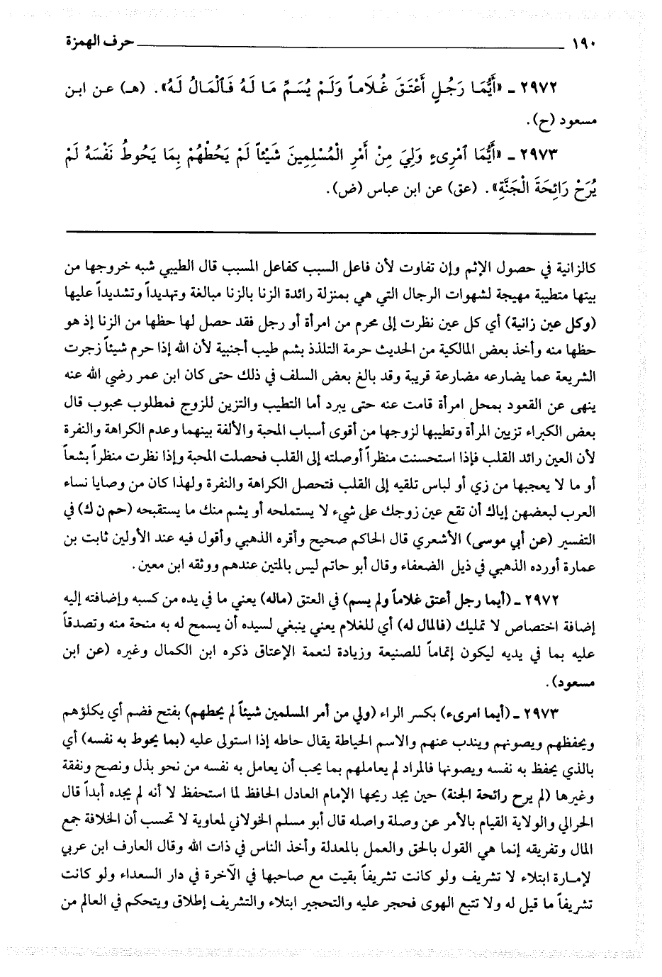 وغيرها (لم يرح رائحة الجنة) حين يجد ريحها الإمام العادل الحافظ لما استحفظ لا أنه لم يجده أبدا قال الحرالي : والولاية القيام بالأمر عن وصلة واصلة قال أبو مسلم الخولاني لمعاوية : لا تحسب أن الخلافة جمع المال وتفريقه إنما هي القول بالحق والعمل بالمعدلة وأخذ الناس في ذات الله وقال العارف ابن عربي : الإمارة ابتلاء لا تشريف ولو كانت تشريفا بقيت مع صاحبها في الآخرة في دار السعداء ولو كانت تشريفا ما قيل له ولا تتبع الهوى فحجر عليه والتحجير ابتلاء والتشريف إطلاق ويتحكم في العالم من