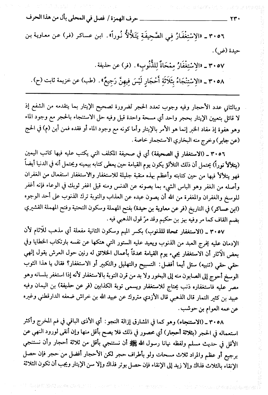 3057 (الاستغفار ممحاة للذنوب) بكسر الميم وسكون الثانية مفعلة أي مذهب للآثام لأن