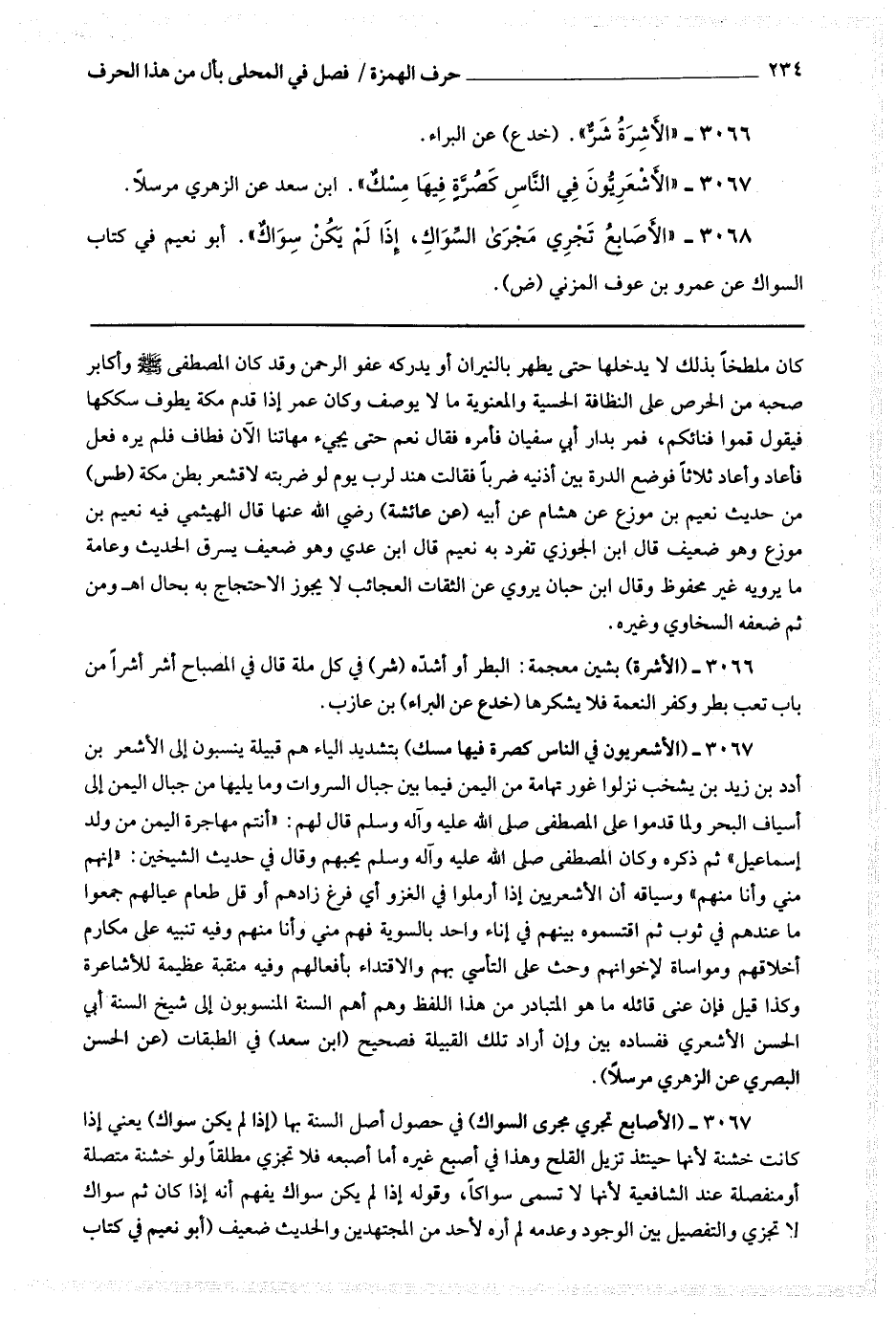 3067 (الأشعريون في الناس كصرة فيها مسك) بتشديد الياء هم قبيلة ينسبون إلى الأشعر بن أدد بن زيد بن يشخب نزلوا غور تهامة من اليمن فيما بيجبال السروات وما يليها من جبال اليمن إلى أسياف البحر ولما قدموا على المصطفى صلى الله عليه وآله وسلم قال لهم : أنتم مهاجرة اليمن من ولد إسماعيل ثم ذكره وكان المصطفى صلى الله عليه وآله وسلم يحبهم وقال في حديث الشيخين : إنهم مني وأنا منهم وسياقه أن الأشعريين إذا أرملوا في الغزو أي فرغ زادهم أو قل طعام عيالهم جمعوا ما عندهم في ثوب ثم اقتسموه بينهم في إناء واحد بالسوية فهم مني وأنا منهم وفيه تنبيه على مكارم أخلاقهم ومواساة لإخوانهم وحث على التأسي بهم والاقتداء بأفعالهم وفيه منقبة عظيمة للأشاعرة وكذا قيل فإن عنى قائله ما هو المتبادر من هذا اللفظ وهم أهل السنة المنسوبون إلى شيخ السنة أبي الحسن الأشعري ففساده بين وإن أراد تلك القبيلة فصحيح (ابن سعد) في الطبقات (عن الحسن البصري عن الزهري مرسلا).