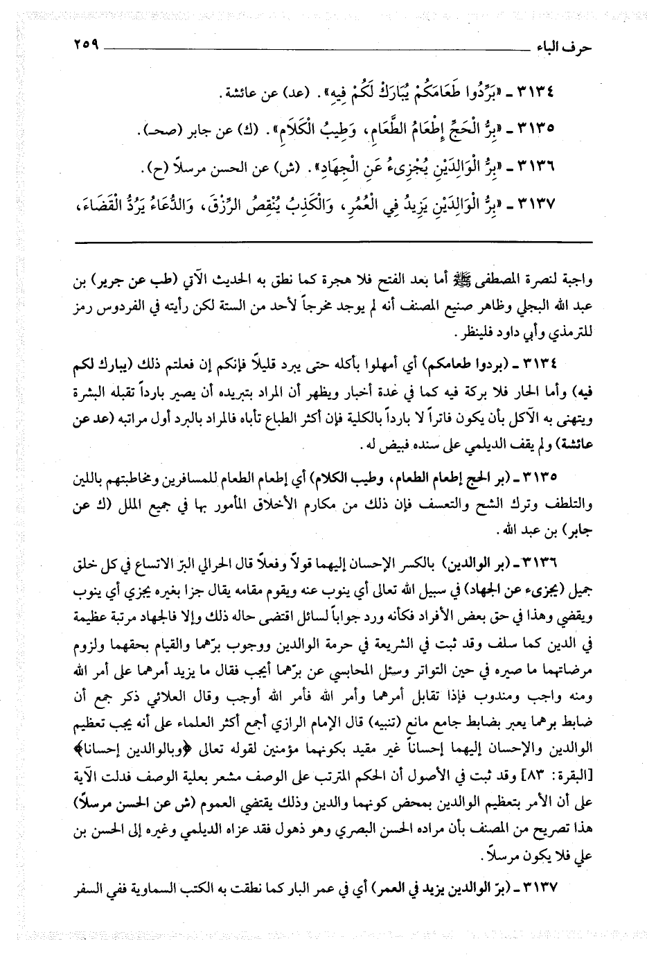 3137 (بر الوالدين يزيد في العمر) أي في عمر البار كما نطقت به الكتب السماوية ففي السفر