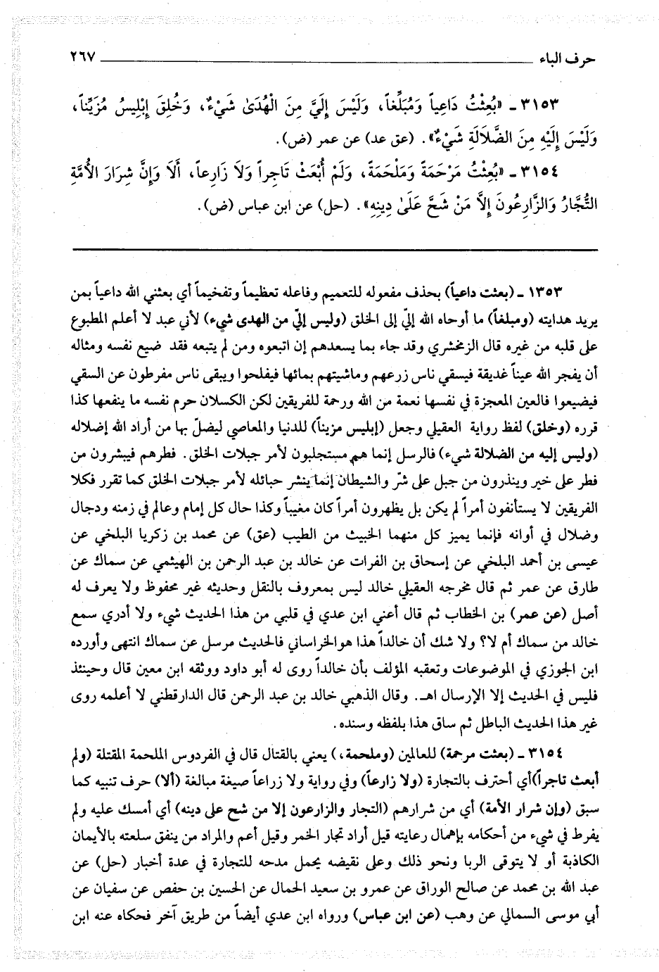 3154 (بعثت مرحمة) للعالمين (وملحمة) يعني بالقتال قال في الفردوس : الملحمة المقتلة (ولم أبعث تاجرا) أي أحترف بالتجارة (ولا زارعا) وفي رواية ولا زراعا صيغة مبالغة (ألا) حرف تنبيه كما سبق (وإن شرار الأمة) أي من شرارهم (التجار والزارعون إلا من شح على دينه) أي أمسك عليه ولم يفرط في شئ من أحكامه بإهمال رعايته قيل أراد تجار الخمر وقيل أعم والمراد من ينفق سلعته بالأيمان الكاذبة أو لا يتوقى الربا ونحو ذلك وعلى نقيضه يحمل مدحه للتجارة في عدة أخبار (حل) عن عبد الله بن محمد عن صالح الوراق عن عمرو بن سعيد الحمال عن الحسين بن حفص عن سفيان عن أبي موسى السمالي عن وهب (عن ابن عباس) ورواه ابن عدي أيضا من طريق آخر فحكاه عنه ابن