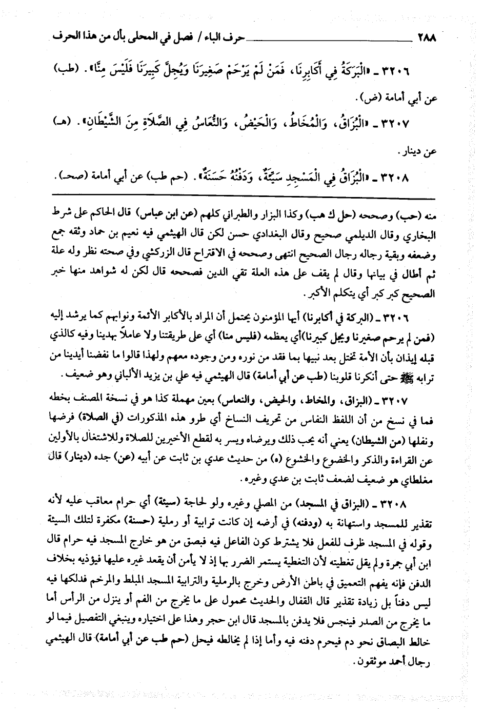 3207 (البزاق والمخاط والحيض والنعاس) بعين مهملة كذا هو في نسخة المصنف بخطه فما في نسخ من أن اللفظ النفاس من تحريف النساخ أي طرو هذه المذكورات (في الصلاة) فرضها ونفلها (من الشيطان) يعني أنه يحب ذلك ويرضاه ويسر به لقطع الأخيرين للصلاة وللاشتغال بالأولين عن القراءة والذكر والخضوع والخشوع.