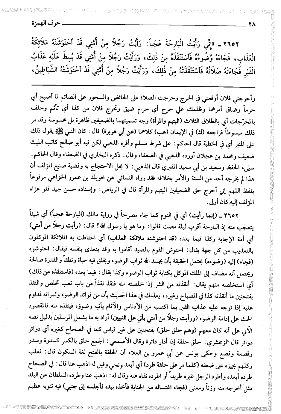 (تنبيه) قال المولى التفتازاني كغيره جميع أحوال يوم القيامة من الصراط والميزان وغير ذلك أمور ممكنة أخبر بها الصادق فوجب التصديق بها ولا استبعاد في أن يسهل الله تعالى العبور على الصراط وإن كان أحد من السيف وأدق من الشعر وأن توزن صحائف الأعمال أو تجعل أجساما نورانية وظلمانية فلا حاجة إلى تأويل الصراط بطريق الجنة وطريق النار أو الأدلة الواضحة أو العبادات أو الشريعة والميزان بالعدل والإدراك ونحو ذلك (ورأيت رجلا من أمتي على شفير جهنم) أي على حرفها وشاطئها وشفير كل شئ حرفه كالنهر وغيره ومنه شفر الفرج ويقولون قعدوا على شفير النهر والبئر والقبر وقرحت أشفار عينيه من البكاء وهي منابت الهدب (فجاءه وجله من الله تعالى) أي خوفه منه (فاستنقذه من ذلك) أي خلصه (ومضى) فالوجل هو وقت انكشاف الغطاء لقلب المؤمن فإذا كان ذلك فتلك خشية العبد فاقشعر جلده ، وإن جهنم حائلة يوم القيامة بين العباد وبين الجنة حتى تضرب الجسور وتهيأ القناطر فعندها يستبين الصراط وهو الطريق لأهلها فالخلق كلهم على شفير النار فوجل