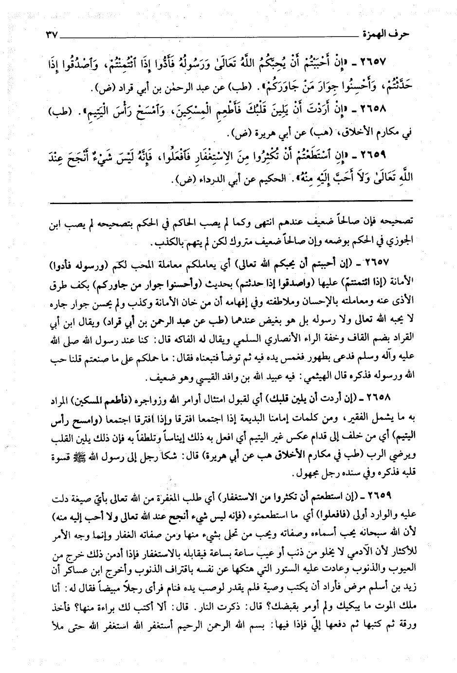 2669 (إن كان خرج يسعى على ولده صغارا) أي يسعى على ما يقيم به أودهم (فهو) أي الإنسان الخارج لذلك أو الخروج أو السعي (في سبيل الله) أي في طريقه وهو مثاب مأجور إذ الخروج فيه كالخروج في سبيل الله أي الجهاد أو السعي كالسعي فيه (وإن كان خرج يسعى على أبوين شيخين كبيرين) أي أدركهما الكبر أي الهرم عنده (فهو في سبيل الله) بالمعنى المقرر (وإن كان خرج يسعى على نفسه يعفها) أي عن المسألة للناس أو عن أكل الحرام أو عن الوطئ الحرام (فهو في سبيل الله وإن كان خرج يسعى) لا لواجب أو مندوب بل (رياء ومفاخرة) بين الناس (فهو في سبيل الشيطان) إبليس أو المراد الجنس أي في طريقهم أو على منهجهم.