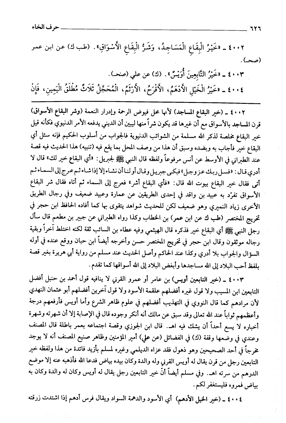 4003 (خير التابعين أويس) بن عامر أو عمرو القرني لا ينافيه قول أحمد بن حنبل أفضل التابعين ابن المسيب ولا قول غيره أفضلهم علقمة الأسود ولا قول آخرين أفضلهم أبو عثمان النهدي لأن مرادهم كما قال النووي في التهذيب أفضلهم في علوم ظاهر الشرع وأما أويس فأرفعهم درجة وأعظهم ثوابا عند الله تعالى وقد سبق عن مالك أنه أنكر وجوده قال في الإصابة : إلا أن شهرته وشهرة أخباره لا يسع أحدا أن يشك فيه اه قال ابن الجوزي : وقصة اجتماعه بعمر باطلة قال المصنف وعندي في وضعها وقفة (ك) في الفضائل (عن علي) أمير المؤمنين وظاهر صنيع المصنف أنه لا يوجد مخرجا في أحد الصحيحين وهو ذهول فقد عزاه الديلمي وغيره لمسلم بأزيد فائدة من هذا ولفظه خير التابعين رجل من قرن يقال له أويس القرني وله والدة وكان بيده بياض فدعا الله فأذهبه عنه إلا موضع الدرهم من سرته اه.