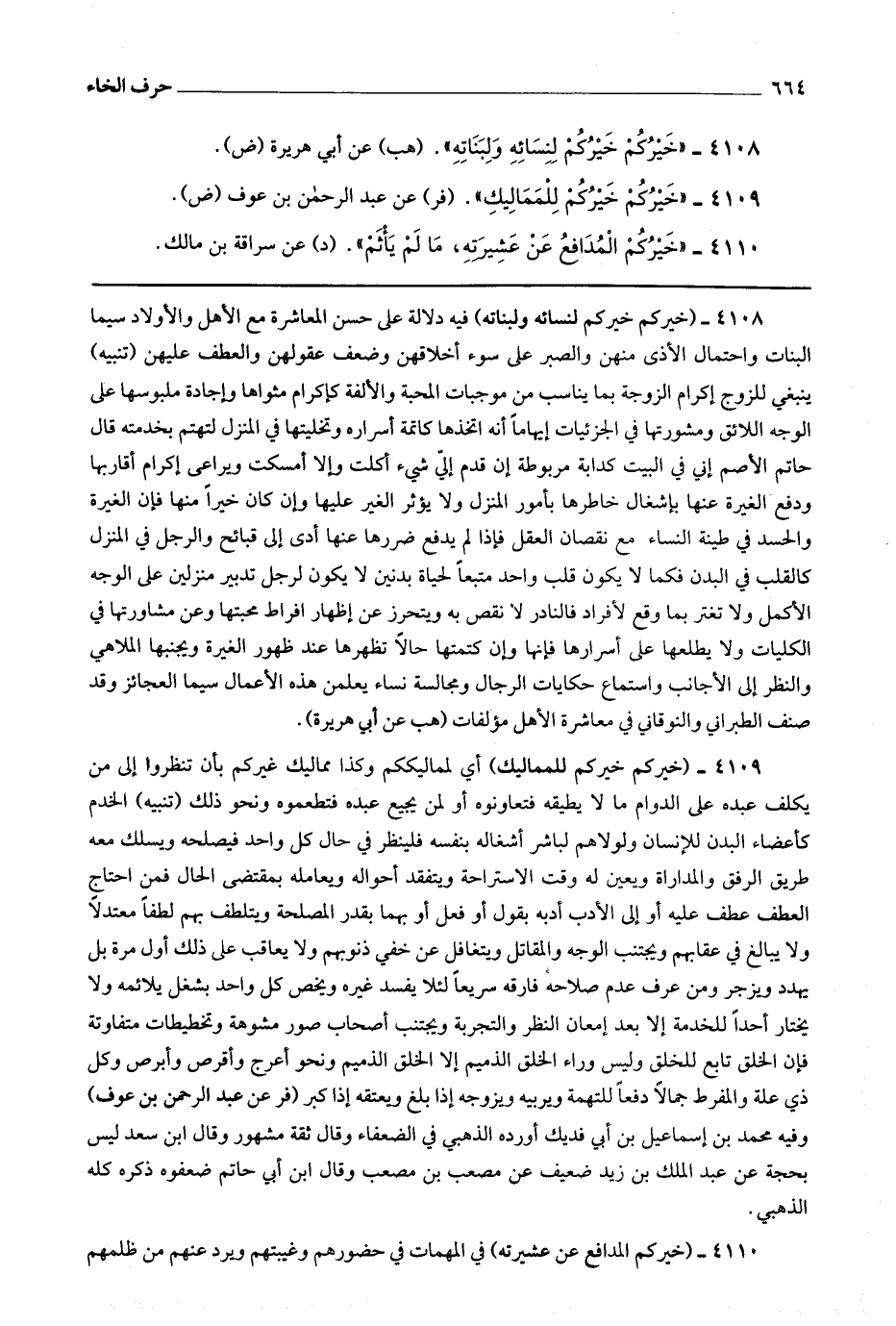 4110 (خيركم المدافع عن عشيرته) في المهمات في حضورهم وغيبتهم ويرد عنهم من ظلمهم