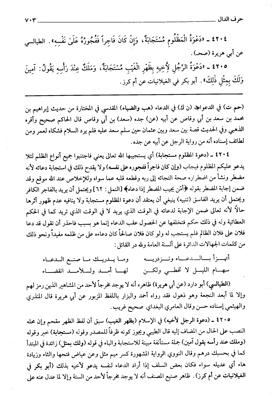 4204 (دعوة المظلوم مستجابة) أي يستجيبها الله تعالى يعني فاجتنبوا جميع أنواع الظلم لئلا