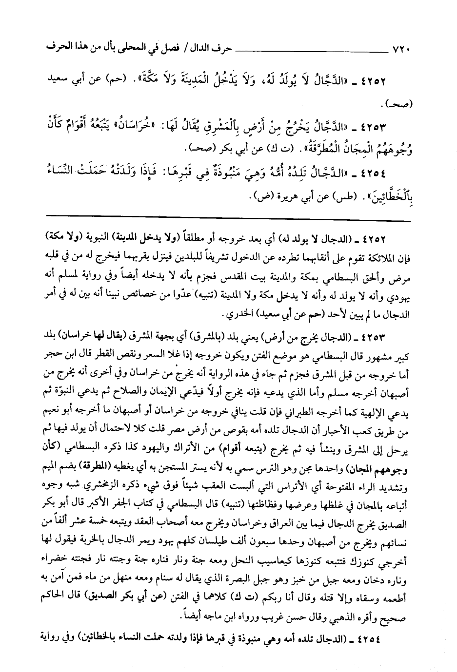 4254 (الدجال تلده أمه وهي منبوذة في قبرها فإذا ولدته حملت النساء بالخطائين) وفي رواية