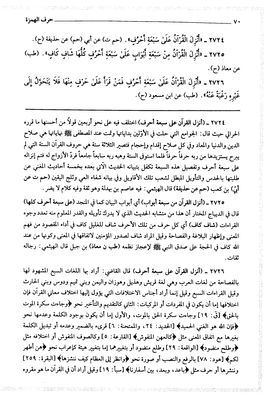 2734 (أنزلت صحف إبراهيم) بضمتين جمع صحيفة وأصلها كما قال الزمخشري قطعة من جلد أو قرطاس كتب فيه وتقول أي العرب صحائف الكتب خير من صحاف الذهب وفي الصحاح الصحيفة الكتاب (أول ليلة من رمضان وأنزلت التوراة لست مضين من رمضان وأنزل الإنجيل لثلاث عشرة خلت من رمضان وأنزل الزبور لثمان عشرة خلت من رمضان وأنزل القرآن لأربع وعشرين خلت من رمضان) قال الحليمي : يريد به ليلة خمس وعشرين نقله عنه البيهقي وأقره اه.