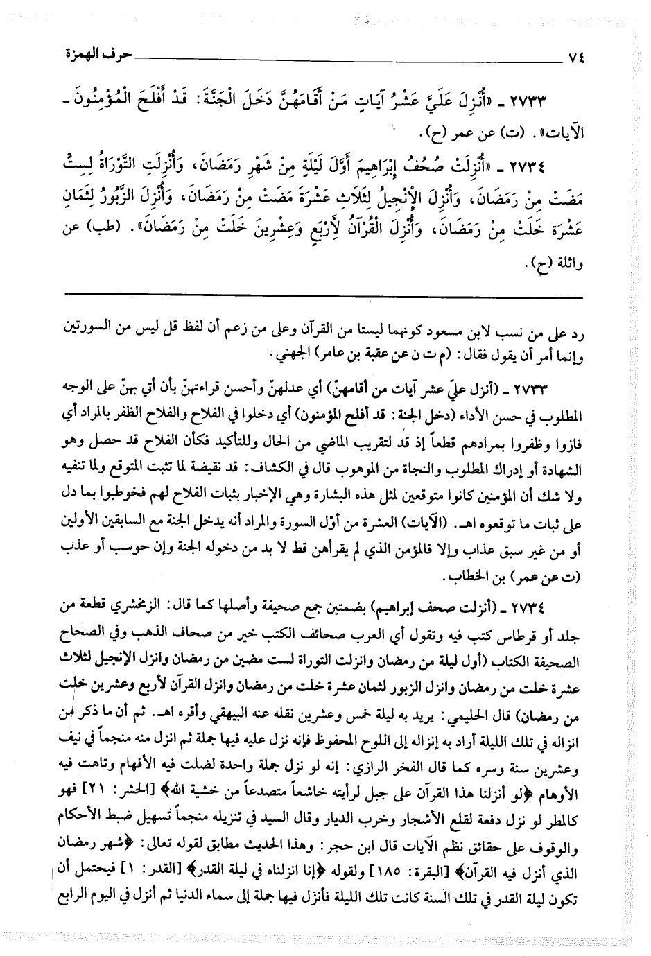 2743 (انظرن) بهمزة وصل وضم المعجمة من النظر بمعنى التفكر والتأمل والتدبر (من) استفهام (إخوانكن) أي تأملن أيها النساء في شأن إخوانكن من الرضاع أهو رضاع صحيح بشرطه من وقوعه ضمن الرضاعة وقدر الارتضاع فإن التحريم إنما يثبت إذا توفرت الشروط قاله لعائشة وقد رأى عندها رجلا ذكرت أنه أخوها منه ثم علل الباعث على إمعان النظر بقوله (فإنما) الفاء تعليلية لقوله انظرن (الرضاعة) المحرمة للخلوة (من المجاعة) بفتح الميم الجوع أي إنما الرضاعة المحرمة ما سد مجاعة الطفل من اللبن بأن أغذاه وأنبت لحمه وقوى عظمه فلا يكفي بنحو مصتين ولا إن كان بحيث لا يشبعه إلا الخبز كأن جاوز الحولين لأن المدار على تقوية عظمه ولحمه من لبنها بحيث يصير كجزء منها وأدنى ما يحصل ذلك خمس رضعات تامات في حال يكون اللبن فيه كافيا للطفل مشبعا له لضعف معدته وإنما يكون ذلك فيما دون حولين (حم ق د ن ه عن عائشة) قالت : دخل علي النبي صلى الله عليه وسلم وعندي رجل فقال : يا عائشة من هذا ؟ قلت : أخي من الرضاعة فذكره.