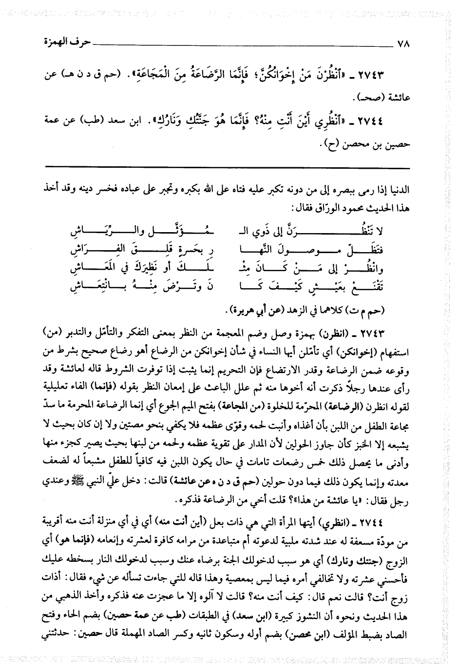 2755 (أنهاكم عن الزور) وفي رواية من قول الزور أي الكذب والبهتان لتماديه في القبح والسماجه في جميع الأديان أو شهادة الزور ويؤيده أنه جاء في رواية كذلك أو هو كقولهم هذا حلال وهذا حرام وقولهم في التلبية لبيك لا شريك لك إلا شريك تملكه وما ملك والمراد اجتنبوا الانحراف عن سنن الشريعة لأن الزور من الإزورار وهو الانحراف فيرجع إلى الأمر بالاستقامة فكأنه قال استقم كما أمرت (طب عن معاوية) بن أبي سفيان.