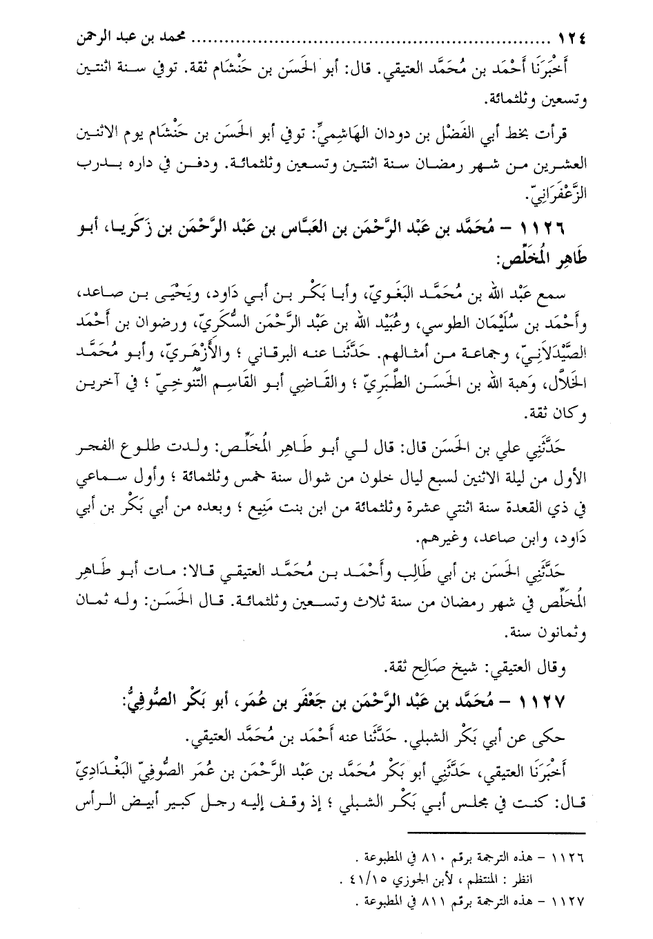 1126- محمد بن عَبْدُ الرَّحْمَنِ بْنُ الْعَبَّاسِ بْنِ عَبْدِ الرَّحْمَنِ بن زكريا، أبو طاهر المخلص [1] :