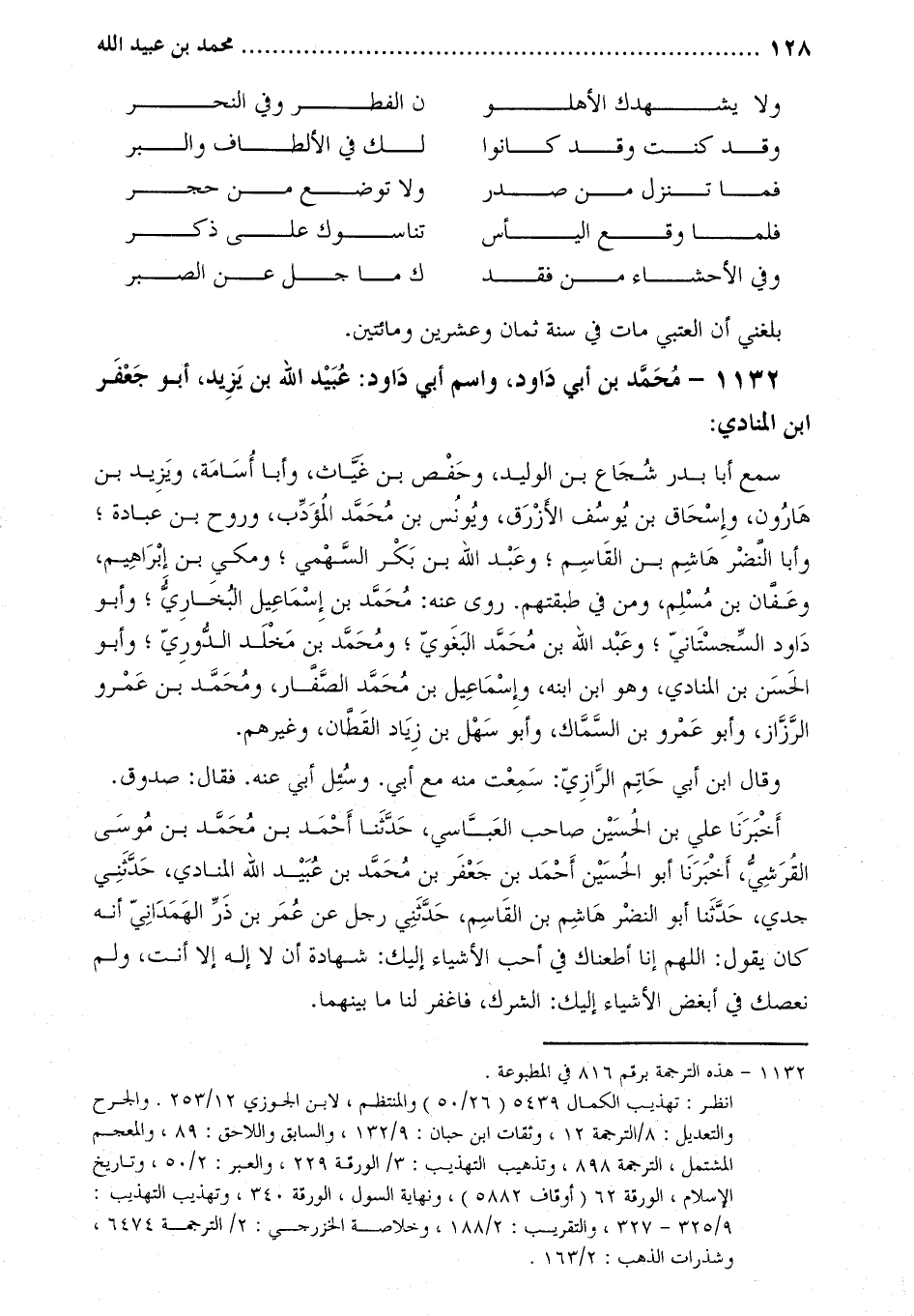 1132- محمد بن أبي داود، واسم أبي داود: عبيد الله بن يزيد، أبو جعفر ابن المنادي [1] :