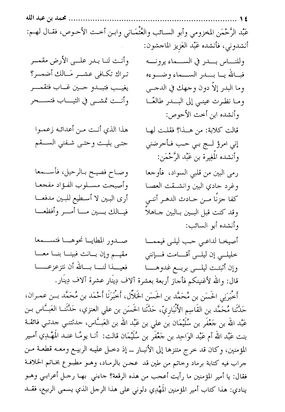 أنشدوني، فأنشده عبد العزيز الماجشون: