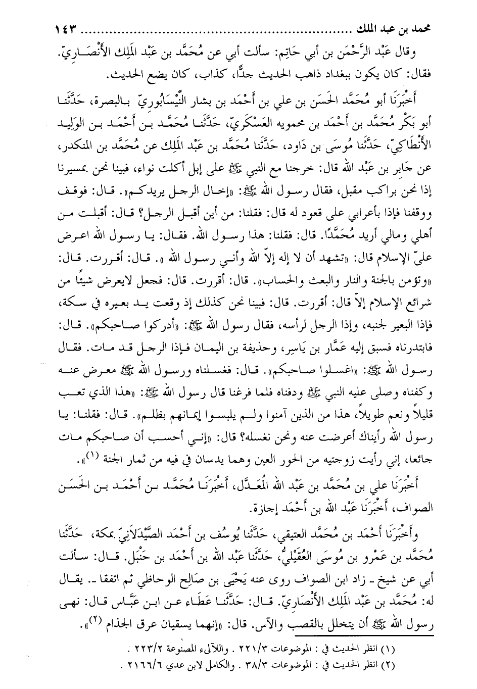 [2] انظر الحديث في: الموضوعات 3/38. والكامل لابن عدي 6/2166