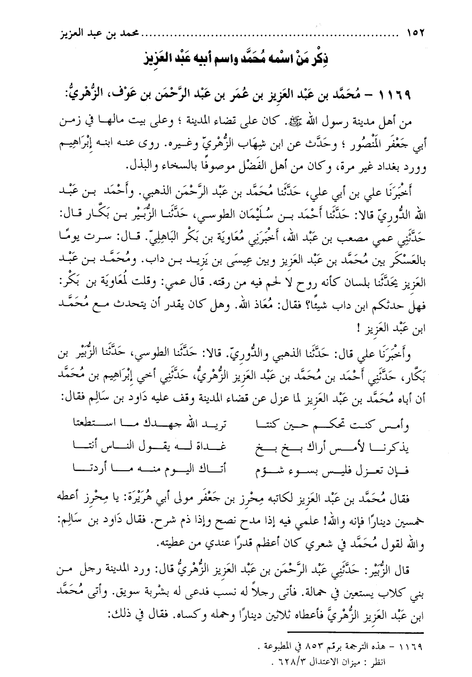 1169- محمد بن عبد العزيز بن عمر بن عبد الرحمن بن عوف، الزهري [1] :