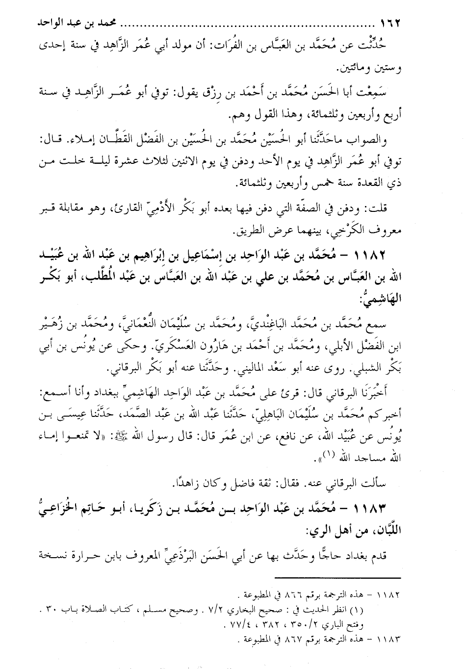1182- محمد بن عبد الواحد بن إسماعيل بن إبراهيم بْن عَبْد اللَّه بْن عُبَيْد اللَّه بْن الْعَبَّاس بْن مُحَمَّد بْن عَلِيّ بْن عَبْدِ اللَّه بن العباس بن عبد المطلب، أبو بكر الهاشمي [1] :
