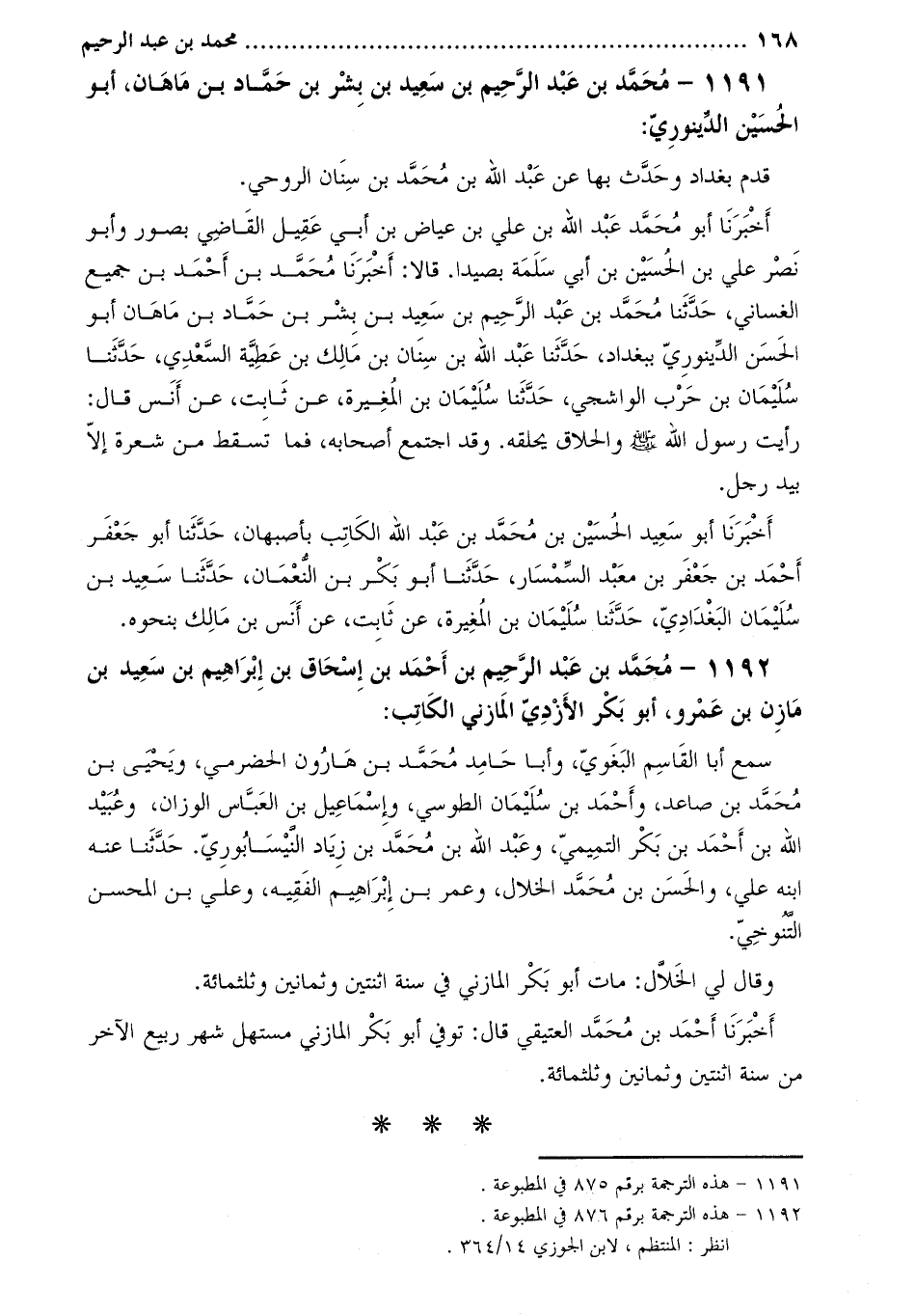 1191- محمد بن عبد الرحيم بن سعيد بن بشر بن حمّاد بن ماهان، أبو الحسين الدينوري [1] :