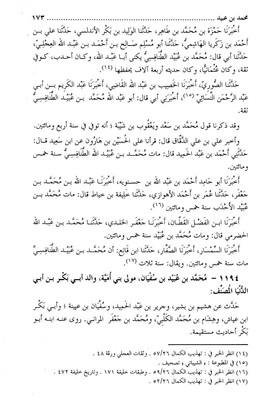 1194- محمد بن عبيد بن سفيان، مولى بني أمية، والد أبي بكر بن أبي الدّنيا المصنف [5] :