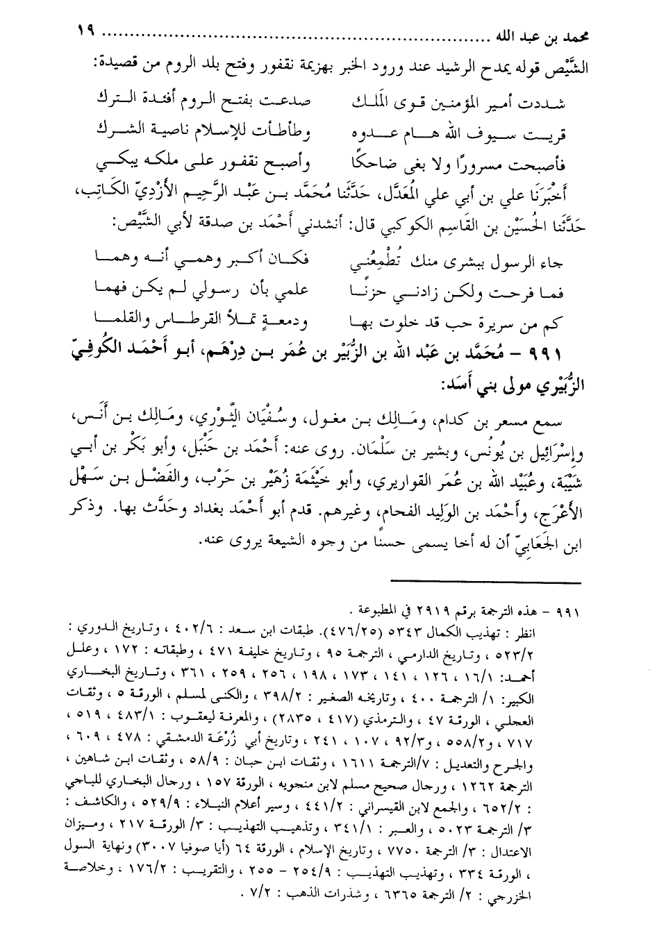 991- محمد بن عبد الله بن الزبير بن عمر بن درهم، أبو أحمد الكوفي الزبيري مولى بني أسد [1] :