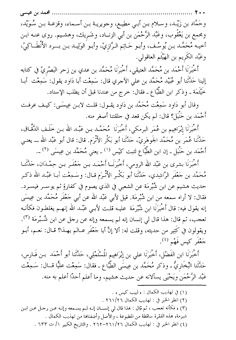 أَخْبَرَنَا إبراهيم بن عمر البرمكي، أخبرنا مُحَمَّدُ بْنُ عَبْدِ اللَّهِ بْنِ خَلَفِ الدّقّاق، حدّثنا عمر بن محمّد الجوهريّ، حَدَّثَنَا أَبُو بَكْر الأثرم. قَالَ: قَالَ أَبُو عبد اللَّه- يعني أَحْمَد بن حنبل- إن ابن الطباع لثبت كيس [1]- يعني محمد بن عيسى [2]-.