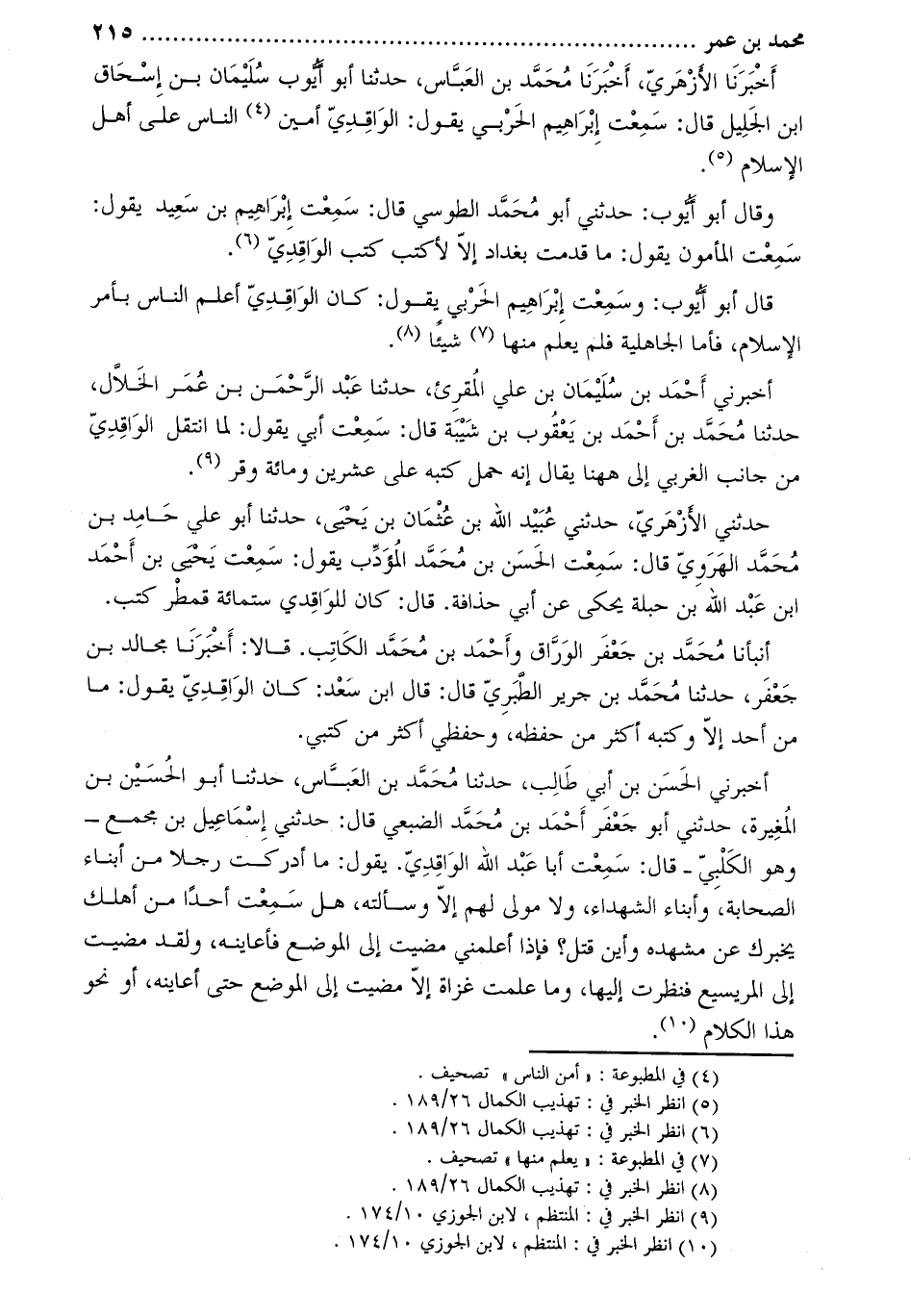 سمُعْتُ المأمونَ يَقُولُ: ما قدمتُ بغداد إلا لأكتبَ كُتُبَ الواقدي [3] .