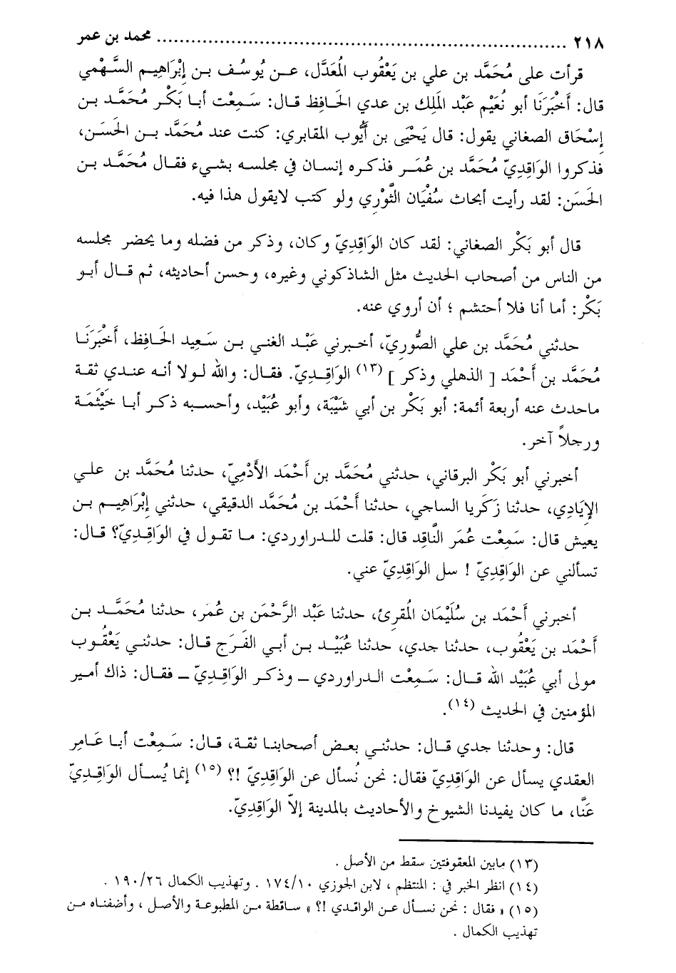 [3] «فقال: نحن نسأل عن الواقدي!؟» ساقطة من المطبوعة والأصل، وأضفناه من تهذيب الكمال