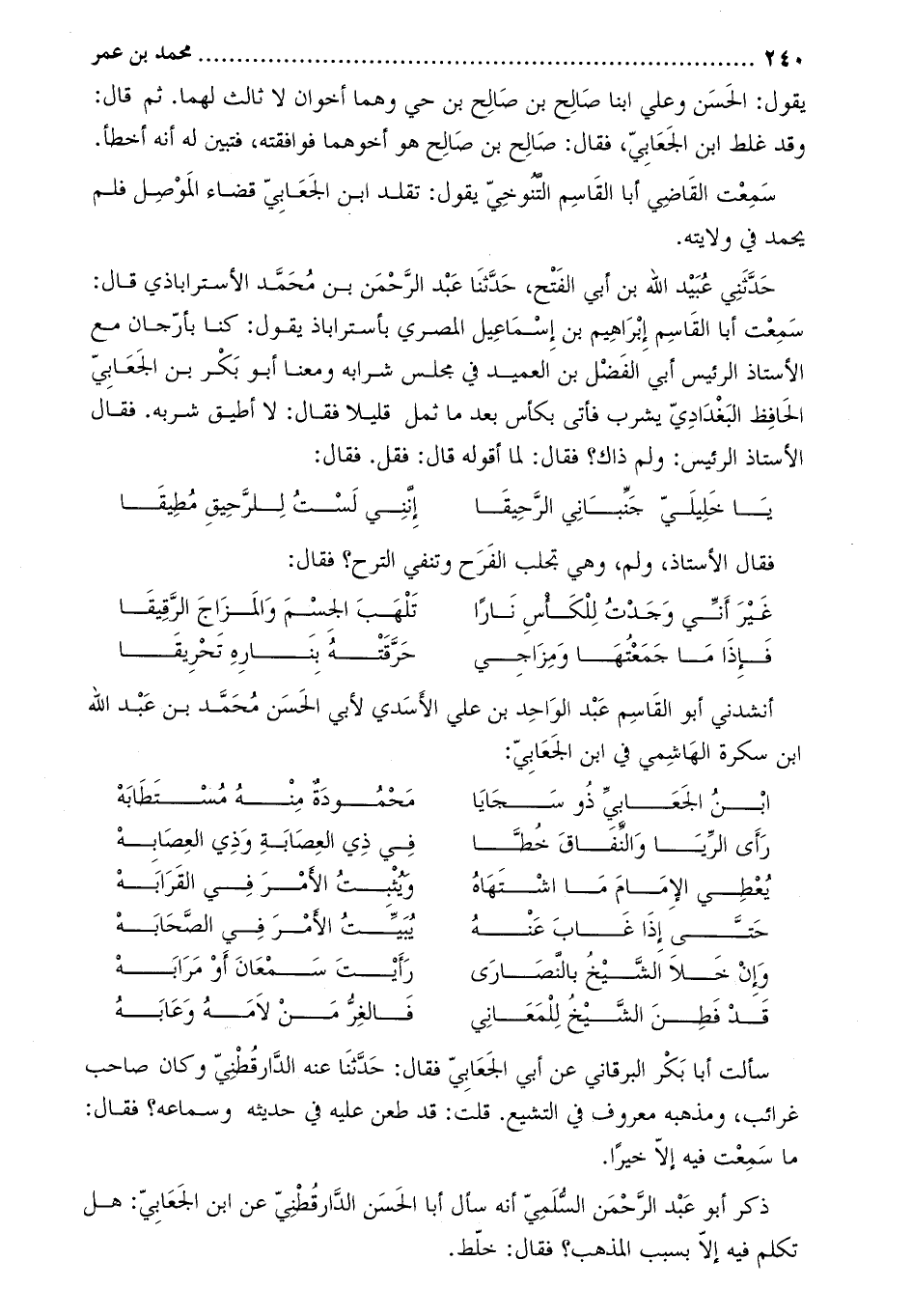 أنشدني أَبُو القاسم عَبْد الواحد بْن علي الأسدي لأبي الحسن محمد بن عبد الله ابن سكرة الهاشمي في ابن الجعابي: