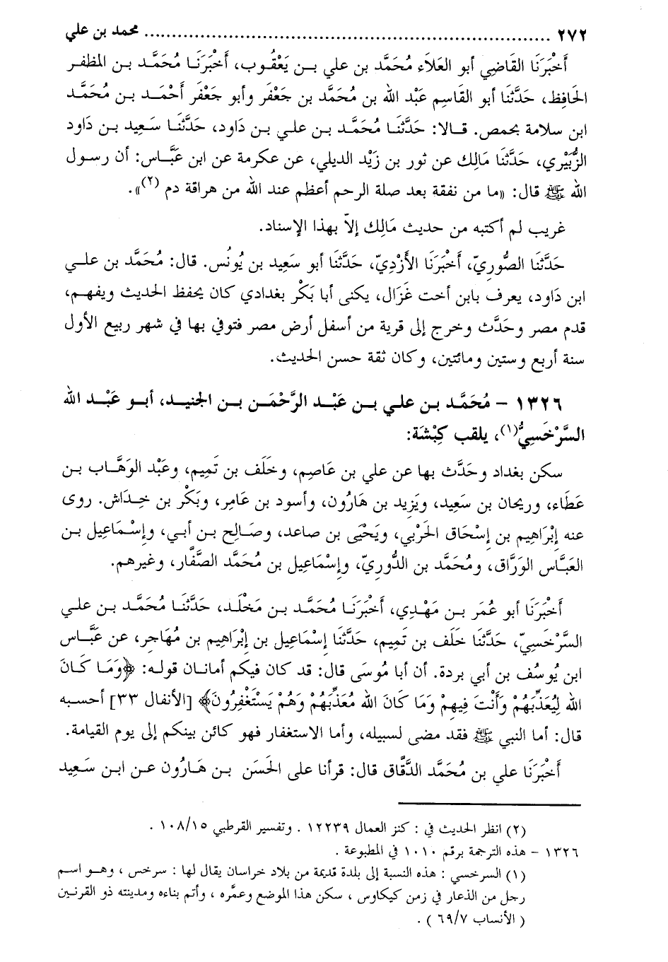 1326-[2] مُحَمَّد بْن عَلِيّ بْن عَبْد الرحمن بْن الجنيد، أبو عبد الله السرخسي [3] ، يلقب كبشة:
