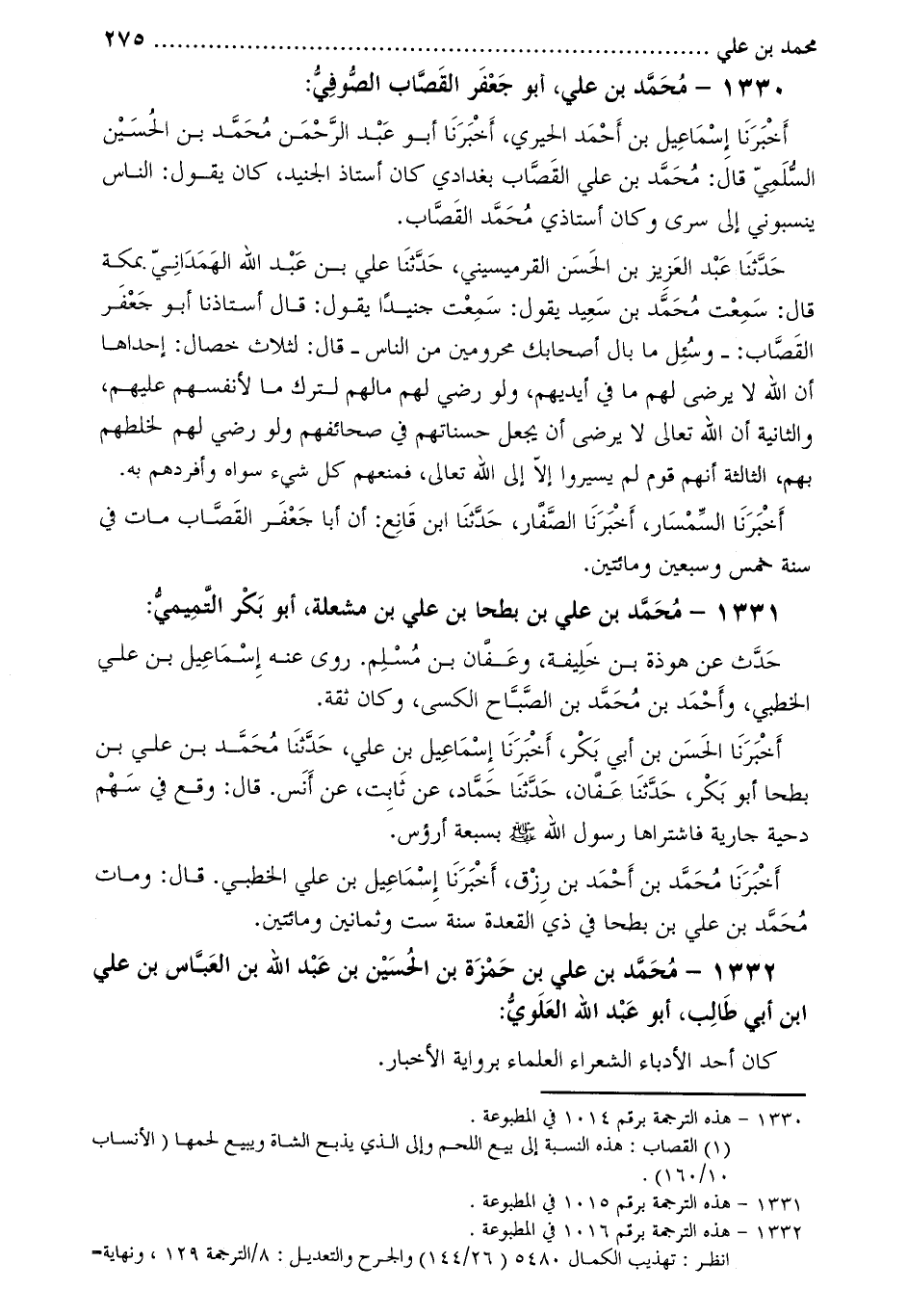 1330-[1] مُحَمَّد بْن عليّ، أبو جعفر القصاب [2] الصوفي: