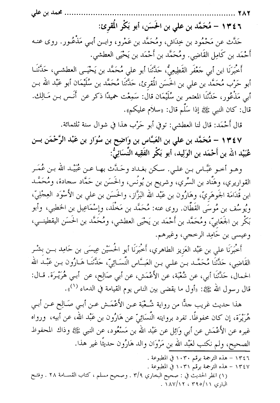1347- محمد بْن علي بْن العباس بْن واضح بْن سوار بْنُ عَبْدِ الرَّحْمَنِ بْنِ عُبَيْدِ اللَّهِ بْنِ أحمد بن الوليد، أبو بكر الفقيه النّسائيّ [2] :