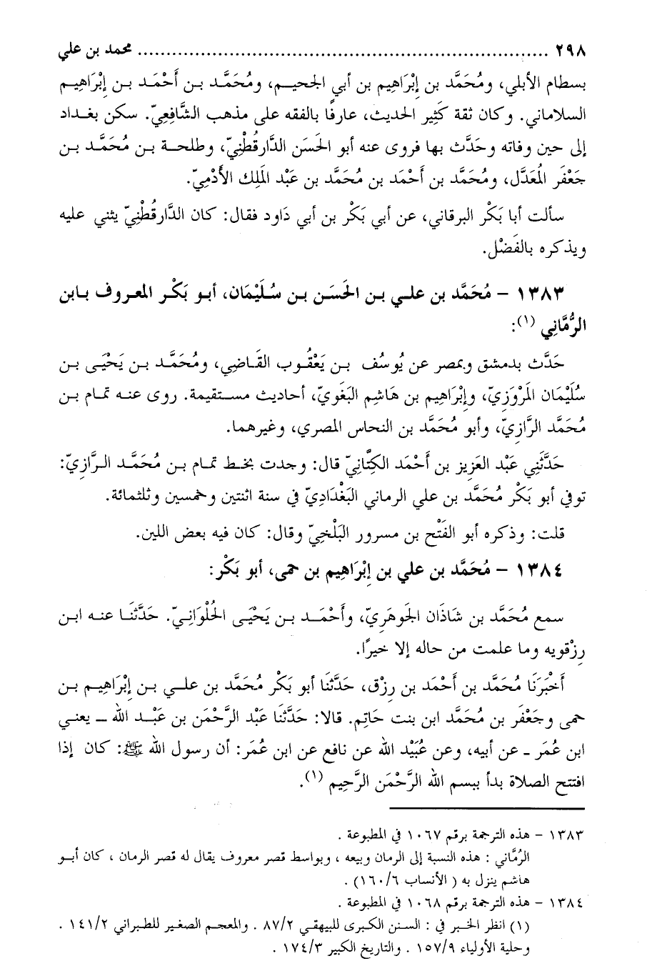 1383-[1] محمد بن علي بن الحسن بن سليمان، أبو بكر المعروف بابن الرماني [2] :
