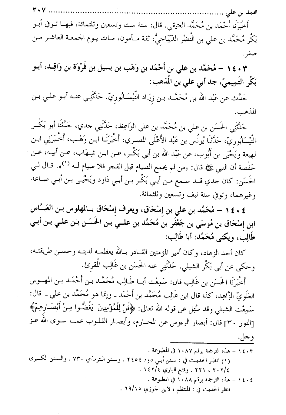 [3] 1404- هذه الترجمة برقم 1088 في المطبوعة.