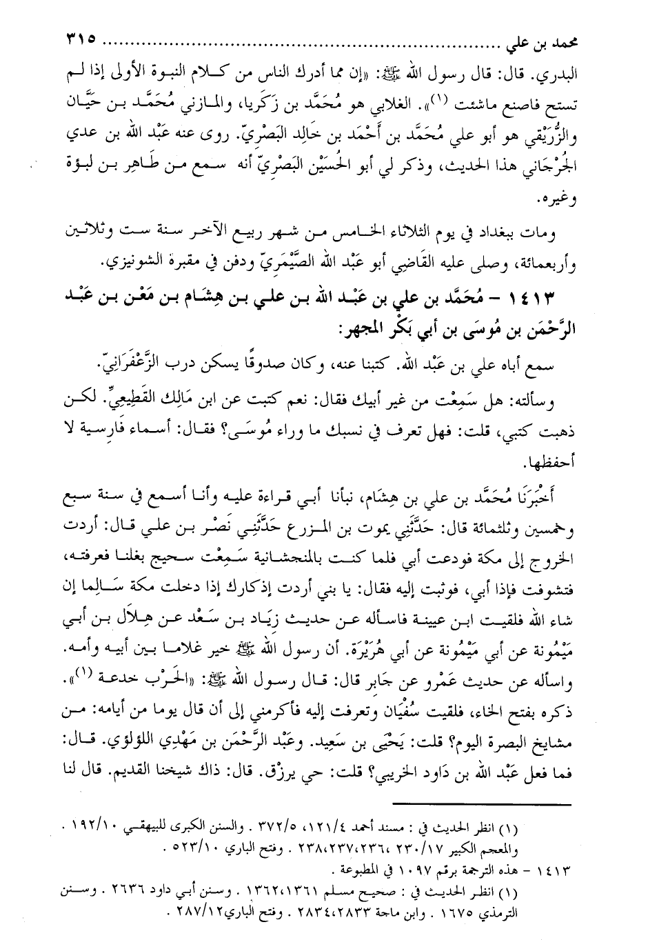 [2] 1413- هذه الترجمة برقم 1097 في المطبوعة.