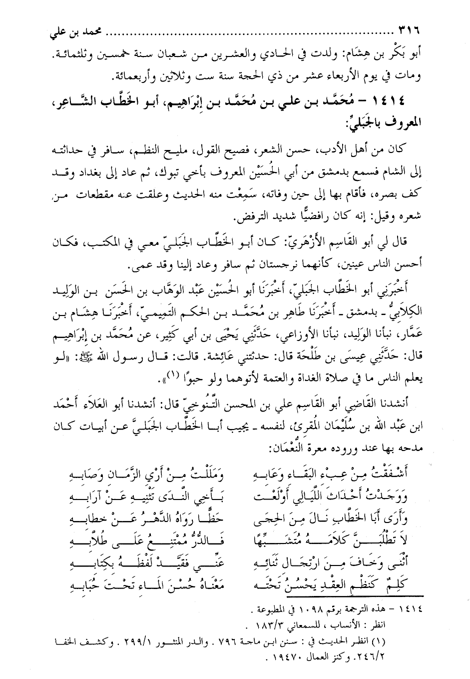 1414- مُحَمَّد بْن عليّ بْن مُحَمَّد بْن إِبْرَاهِيم، أبو الخطاب الشاعر، المعروف بالجبلي [1] :