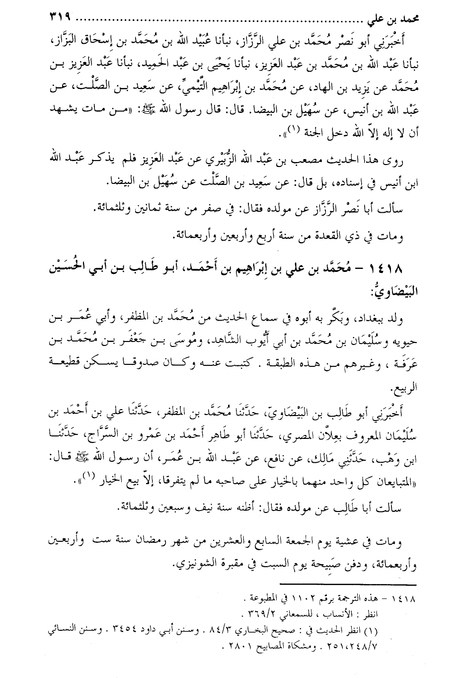 1418-[1] محمد بن علي بن إبراهيم بن أحمد، أبو طالب بن أبي الحسين البيضاوي [2] :