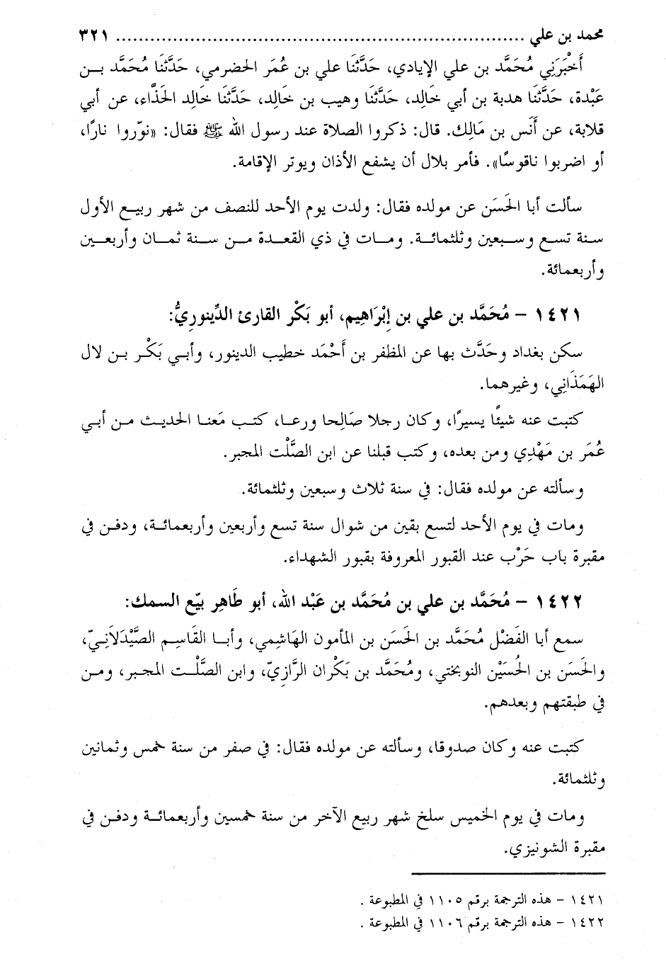 [1] 1421- هذه الترجمة برقم 1105 في المطبوعة.