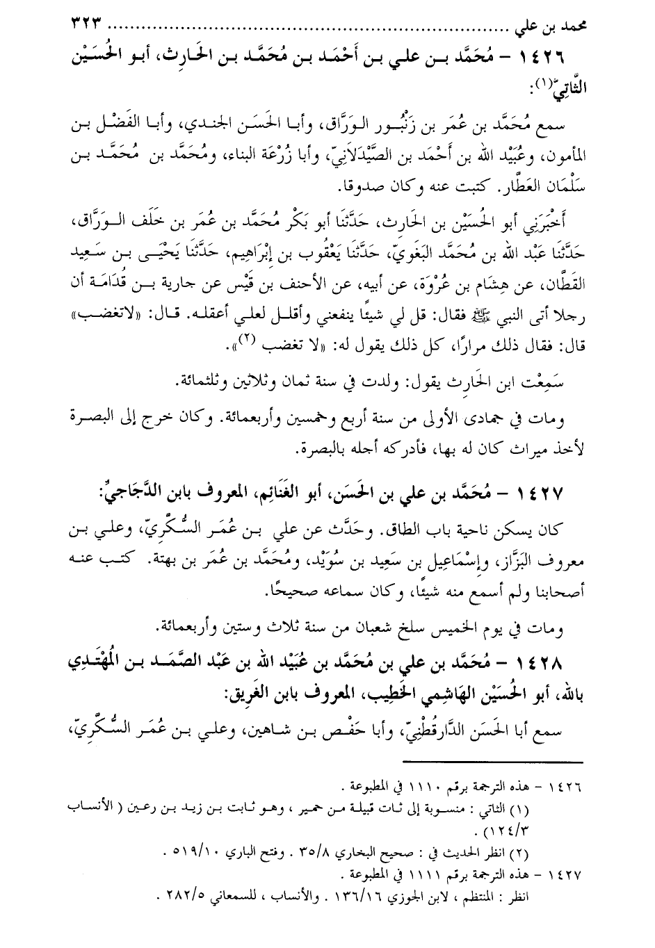 1426-[1] مُحَمَّدِ بْنِ عَلِيّ بْن أَحْمَد بن محمد بن الحارث، أبو الحسين الثّاتيّ [2] :