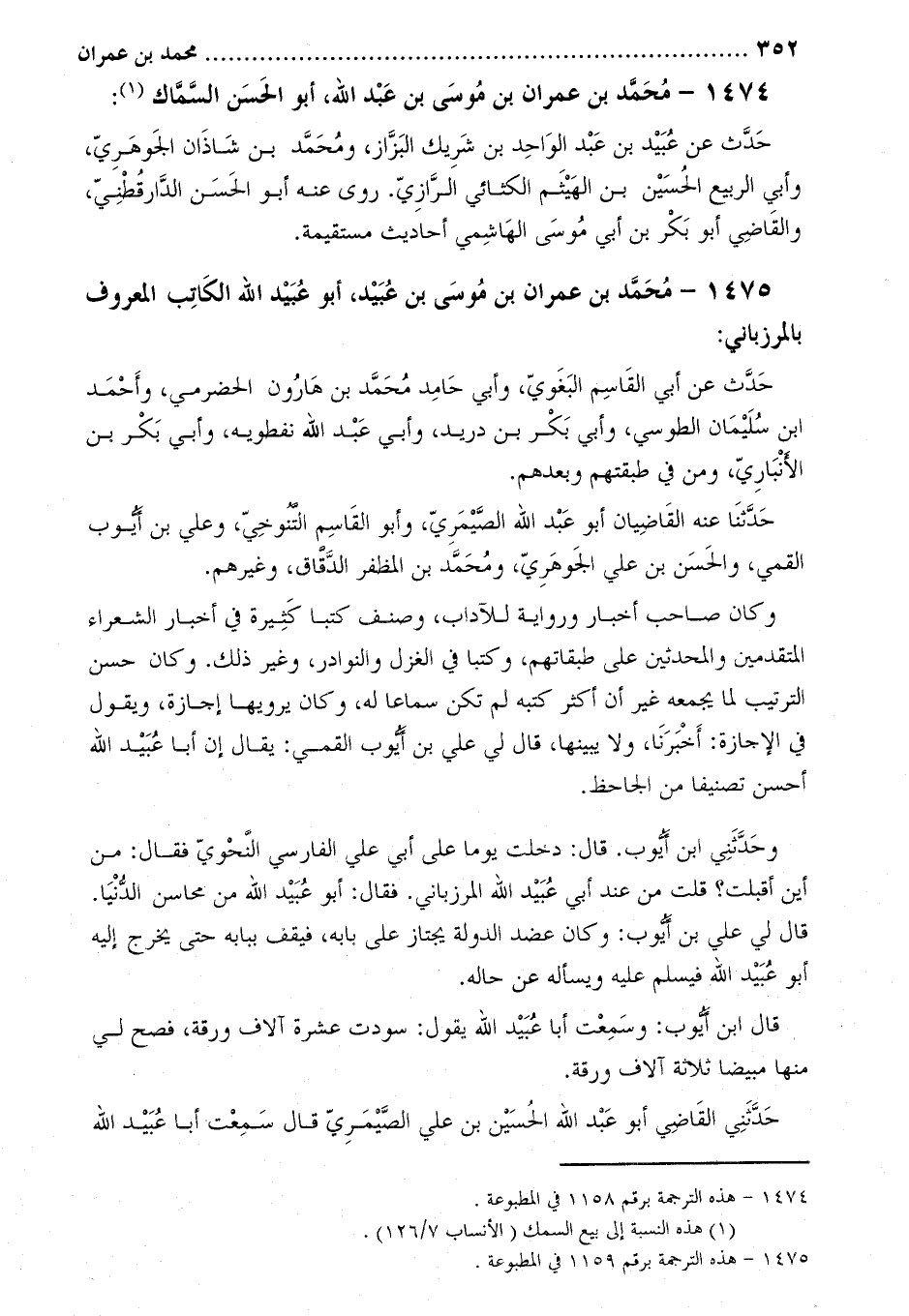 1475- محمد بن عمران بن موسى بن عبيد، أبو عبيد الله الكاتب المعروف بالمرزباني [3] :
