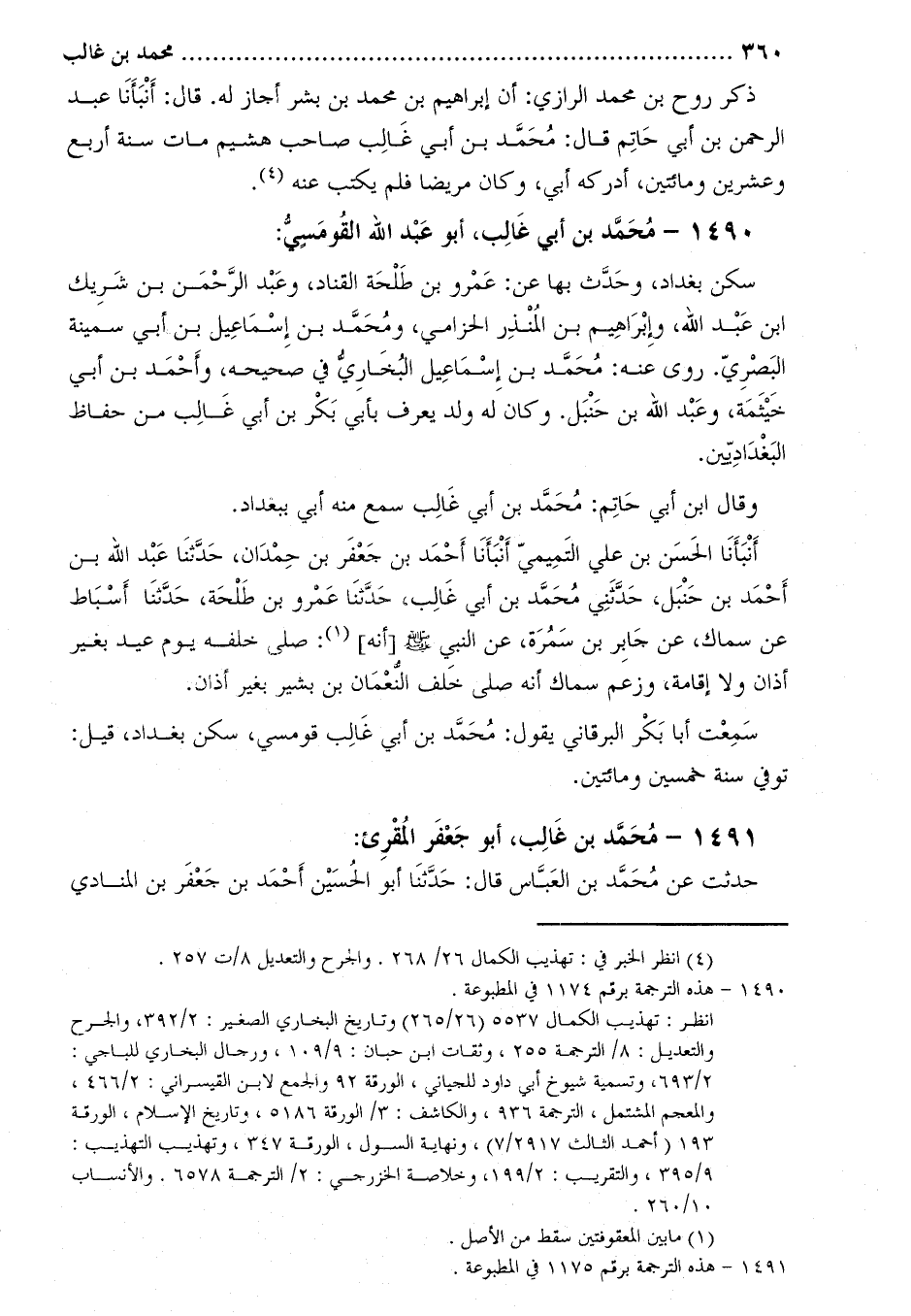 [4] 1491- هذه الترجمة برقم 1175 في المطبوعة.
