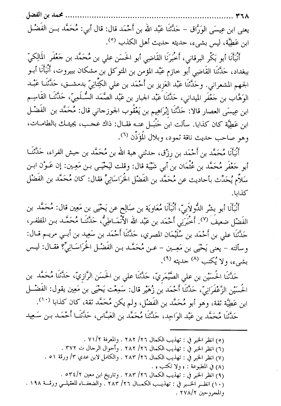 [6] انظر الخبر في: تهذيب الكمال 26/283. والضعفاء للعقيلي ورقة 198.