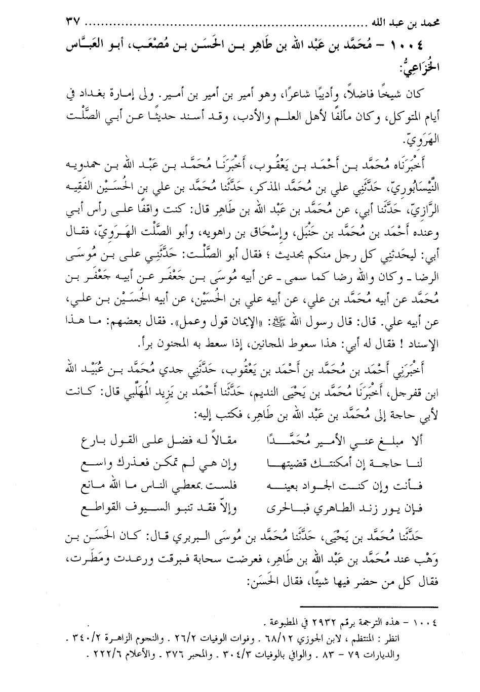 1004- مُحَمَّد بْن عَبْد اللَّه بْن طَاهِر بْن الحسن بن مصعب، أبو العباس الخزاعي [1] :