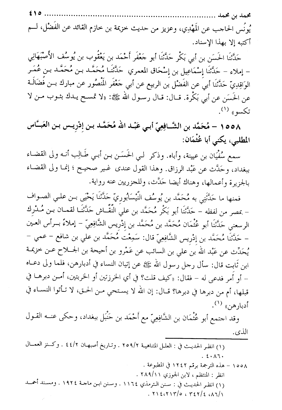 . 1558- محمد بن الشافعي أبي عبد الله محمد بن إدريس بن العباس المطلبي، يكنى أبا عثمان [2] :