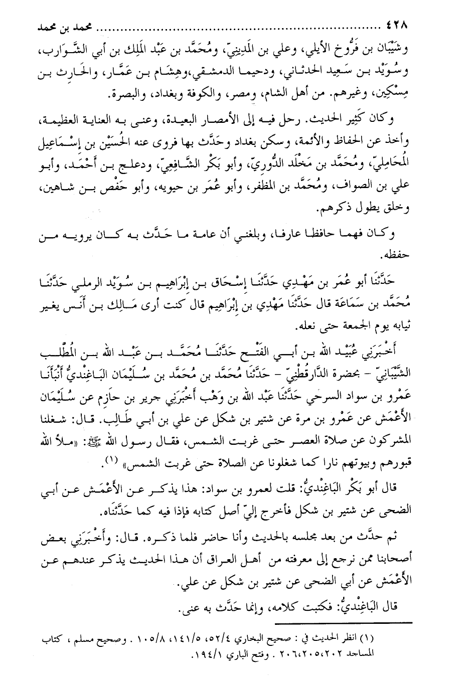 قَالَ الْبَاغَنْدِيُّ: فَكَتَبْتُ كَلامَهُ، وَإِنَّمَا حَدَّثَ بِهِ عنى.