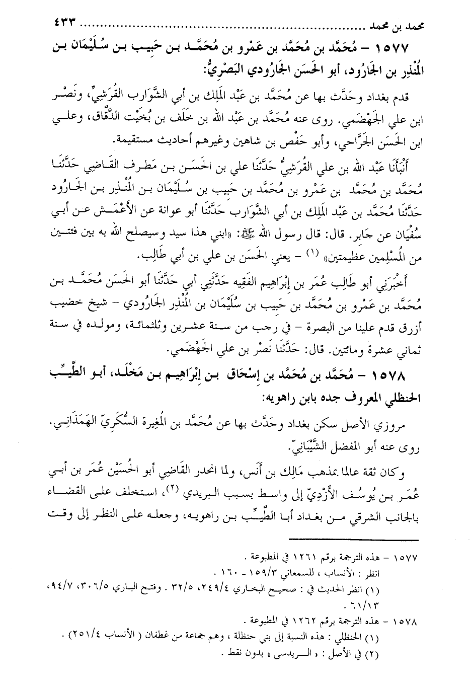 1577- محمد بن محمد بن عمرو بن محمد بن حبيب بن سليمان بن المنذر بن الجارود، أبو الحسن الجارودي البصري [1] :