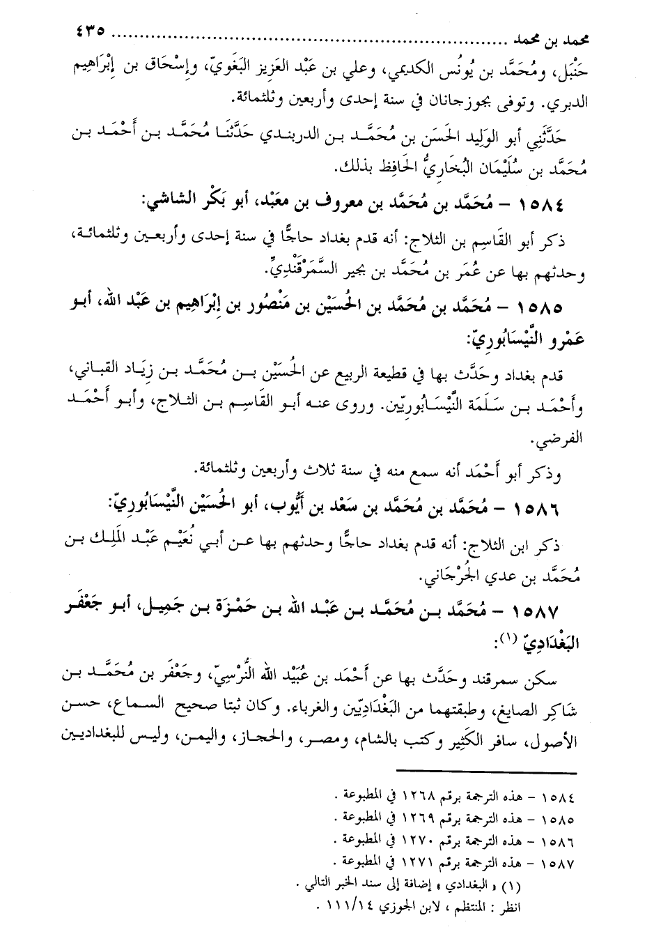 [4] 1587- هذه الترجمة برقم 1271 في المطبوعة.